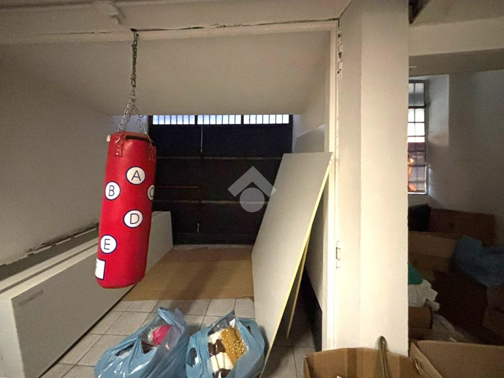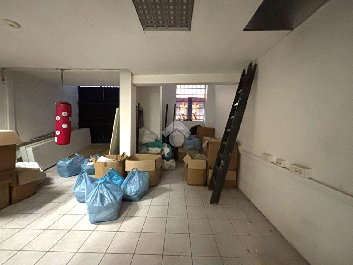 65 mq al piano seminterrato, collegati internamente da scala e accessibili anche tramite rampa carrabile (ideale per carico/scarico o uso magazzino).